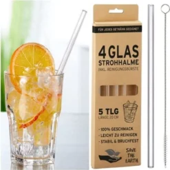 6 Stück Trinkgläser Mit Strohhalm Wiederverwendbar Glas Gläser